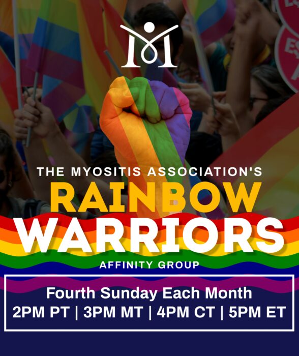 TMA is proud to host LGBTQIA+ programming in the form of TMA’s Rainbow Affinity Group! This group meets on the fourth Sunday of each month. In addition to providing support around commonality in addition to a myositis diagnosis, this group seeks to create connectivity within the broader LGBTQIA+ community and ensure all LGBTQIA+ patients are provided an affirmative, inclusive, and respectful environment in healthcare settings and throughout their myositis journey. Meets monthly on the fourth Sunday at 5 PM ET | 4 PM CT | 3 PM MT | 2 PM PT. Register here.